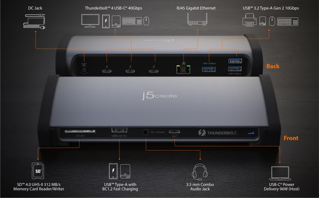 - 1 – JTD562 Thunderbolt™ 4 Docking Station